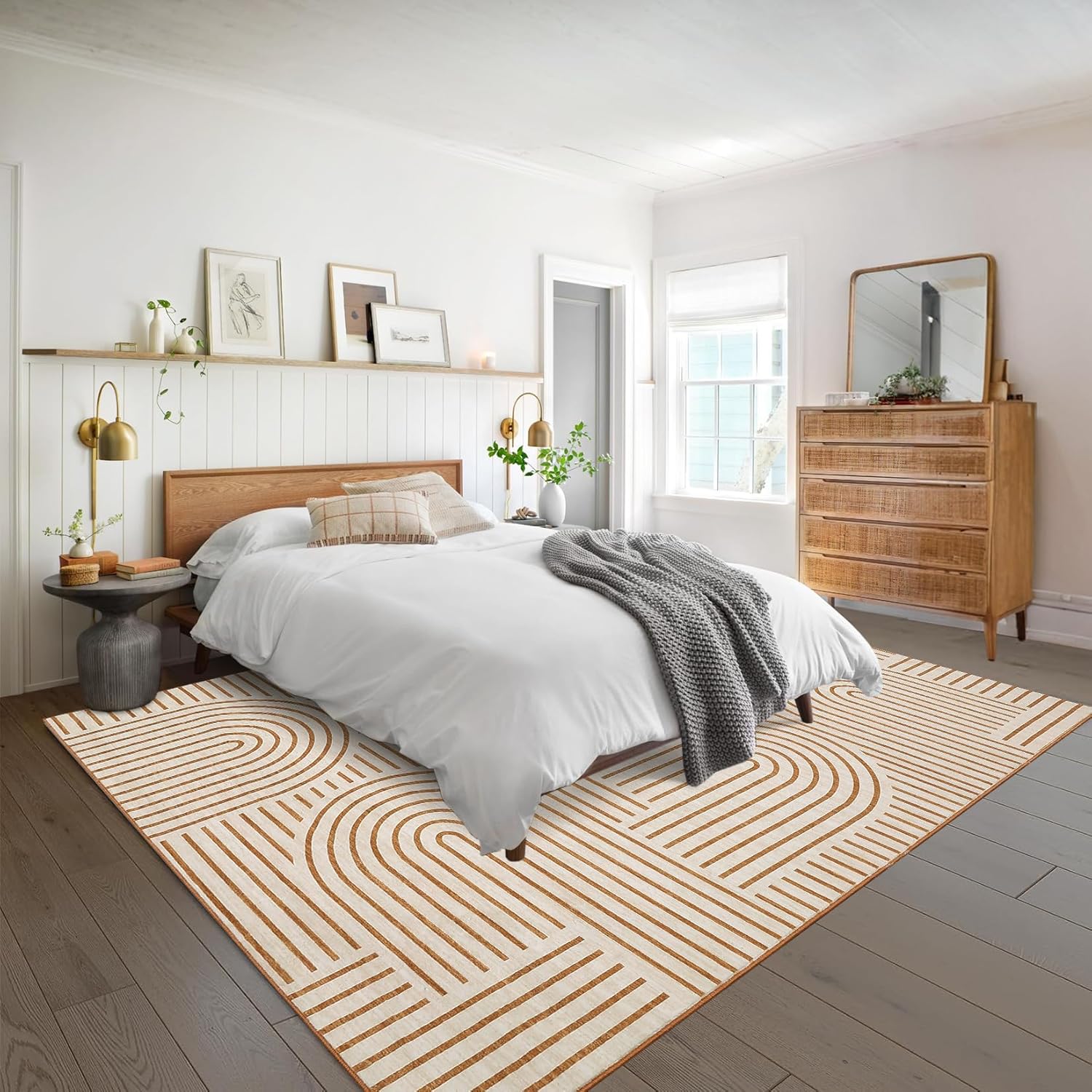The non-slip rubber backing provides stability and prevents the rug from sliding on hard floors, offering safety and peace of mind. This Boho Geometric Carpet in vibrant orange tones is sure to make a bold statement in your home.