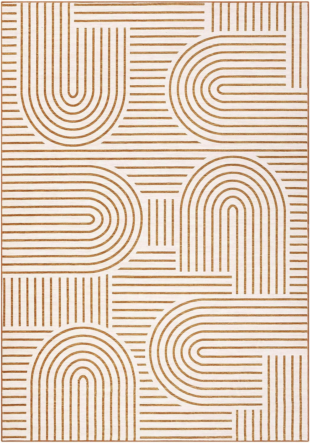 Washable Rug 8×10 Area Rugs for Living Room, Abstract Rug for Bedroom, Soft Rainbow Non Slip Throw Rugs with Rubber, Low Pile Stain Resistant Boho Geometric Carpet for Dining Room, Orange
